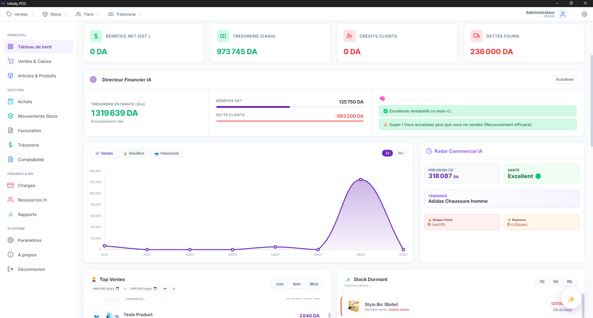 تحكم كامل في محلك، مخزونك، ومداخيلك. برنامج Infinity POS يمنحك القوة والسهولة التي تحتاجها لتطوير تجارتك.